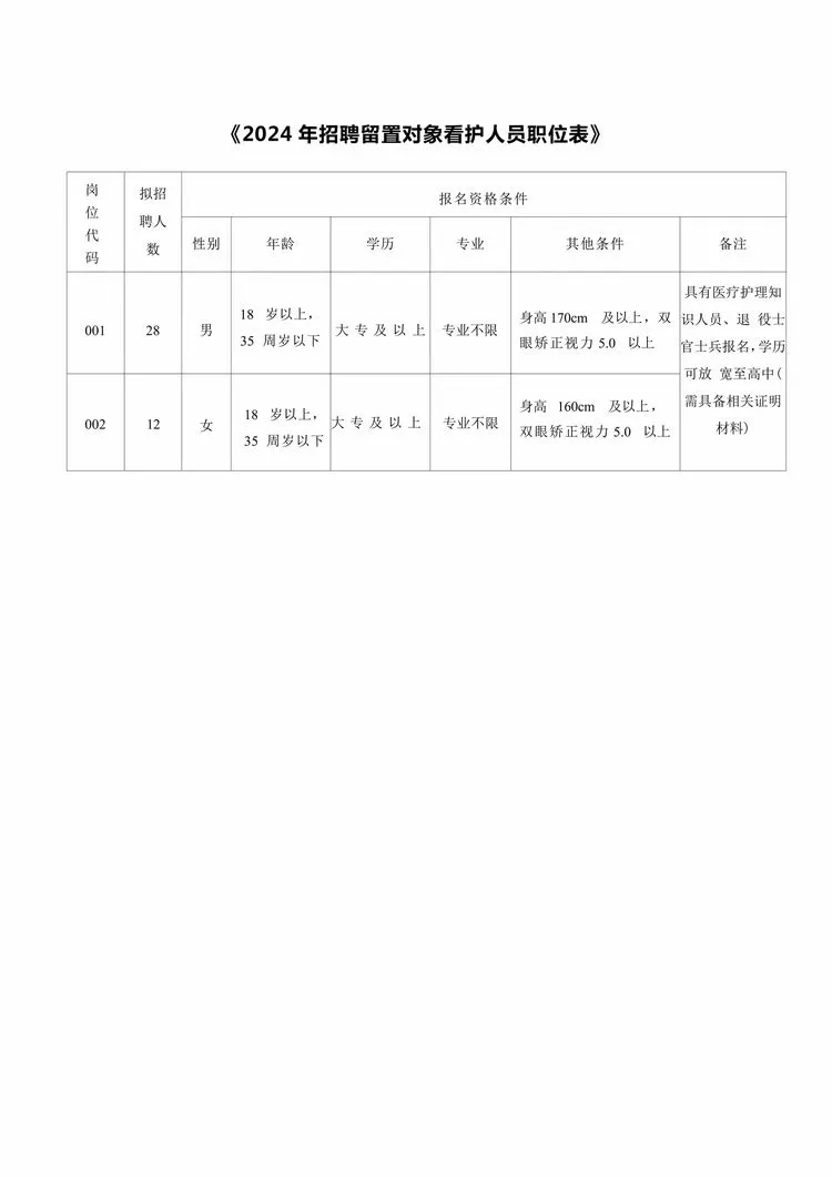 ??? 附件:1.《2024年招聘留置對(duì)象看護(hù)人員職位表》