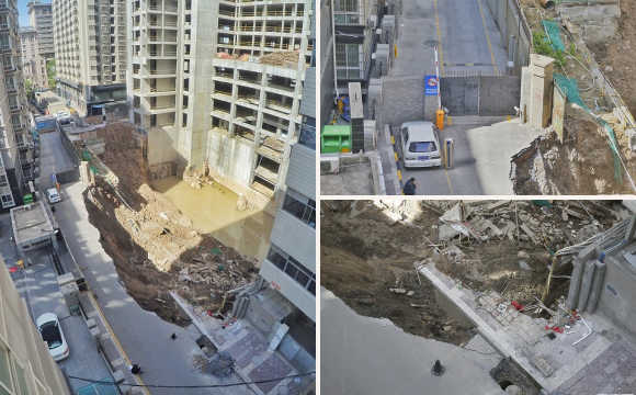 2017年4月18日消息,西安。直到現(xiàn)在,在西華門宏城國際公寓居住的業(yè)主康先生還心有余悸:17日凌晨2時(shí)許,在他將車挪走后5分鐘左右,路面就發(fā)生大面積塌陷。據(jù)了解,垮塌處有16米深,南北長度也有20多米,里面滿是水。