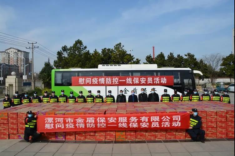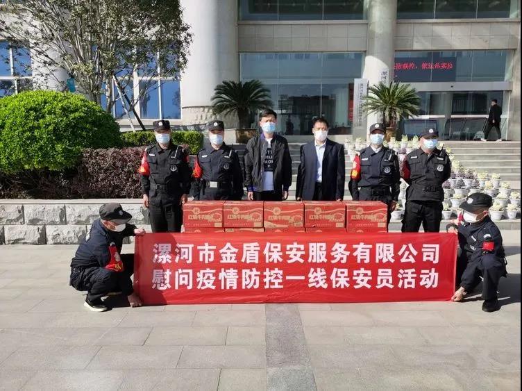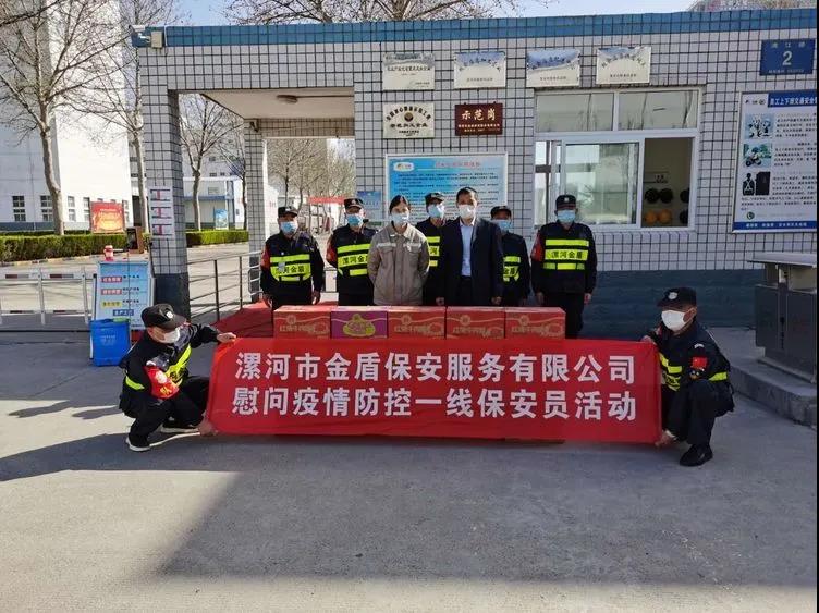 ▼源匯區(qū)機關(guān)事務(wù)服務(wù)中心綜合科科長張娜與公司領(lǐng)導(dǎo)班子共同慰問堅守在疫情防控一線的保安員代表。
