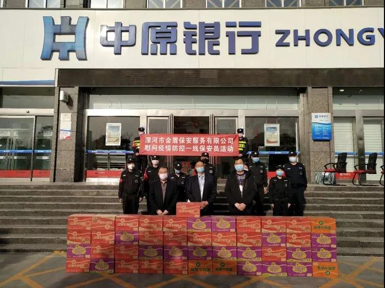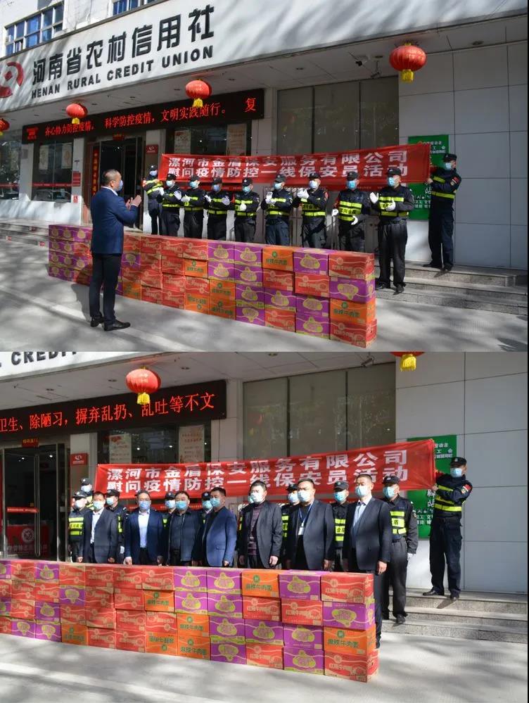 ▼省農(nóng)行漯河分行副行長李可,保衛(wèi)科科長胡勇與公司領(lǐng)導(dǎo)班子共同慰問堅守在疫情防控一線的保安員代表。