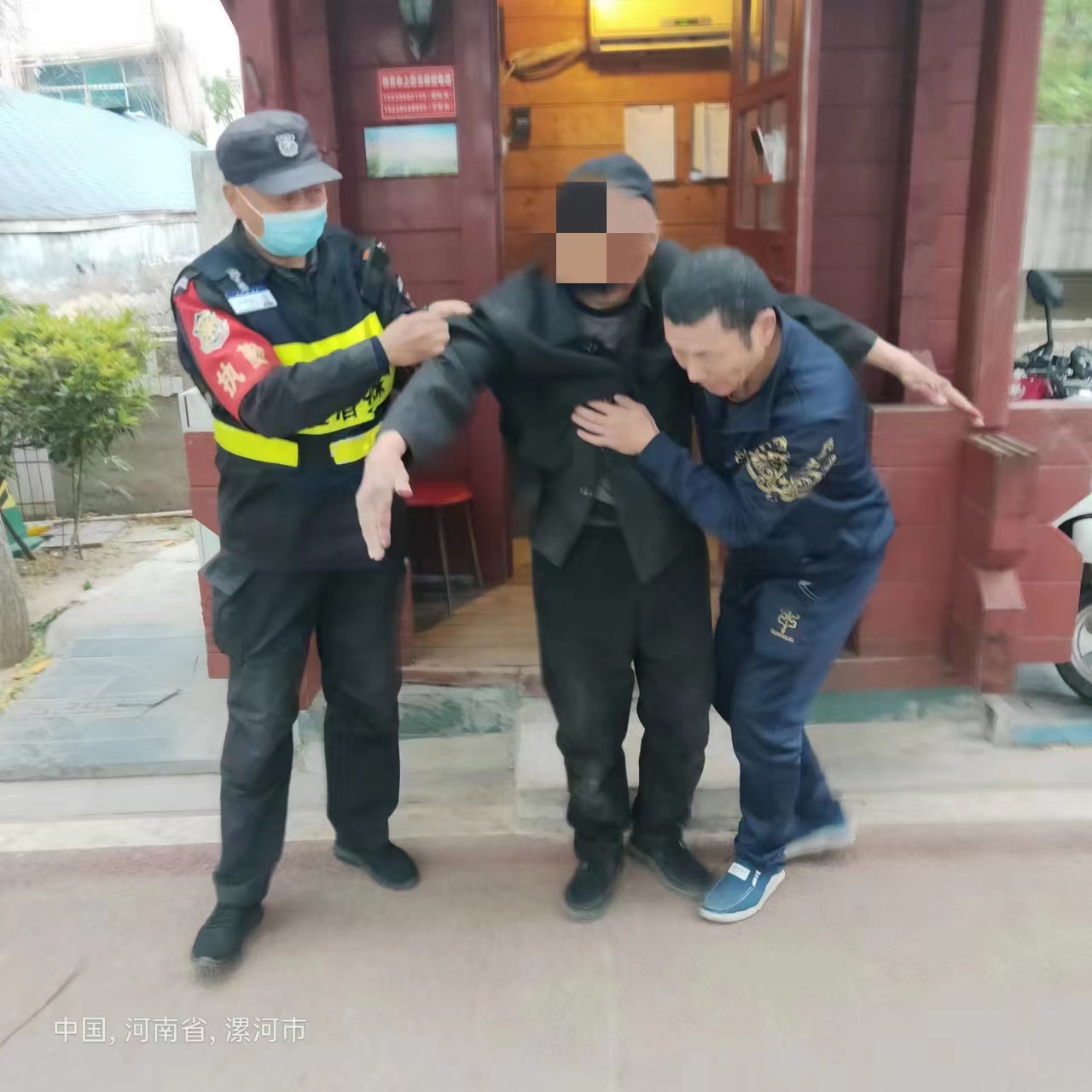 2023年4月21日早上,我公司沙澧景區(qū)保安隊(duì)員張作斌在巡邏途中,發(fā)現(xiàn)一位不慎摔倒的晨練老人。張作斌馬上把老人扶到值班崗?fù)ば菹?,同時(shí)聯(lián)系老人家屬并對(duì)老人加以安撫。