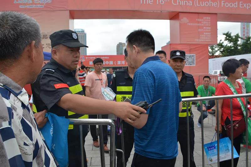 ? ? ? 安保期間,漯河市金盾保安服務(wù)有限公司抽調(diào)2300人次特勤隊員,負責(zé)活動進行期間的安全工作及交通疏導(dǎo)工作。同時在展區(qū)入口處安裝安檢門10臺,手持金屬探測儀10臺,用來盤查可疑人員,防止危險品被帶進展館,確保食博會有序進行。同時出動巡邏車26輛,清障車4輛。并成立了會場總指揮部、分指揮部、交通保障組、武裝巡邏組,加強會場及周邊的治安巡邏防控,強化展會期間的各項安保措施,以確保食博會的安全。