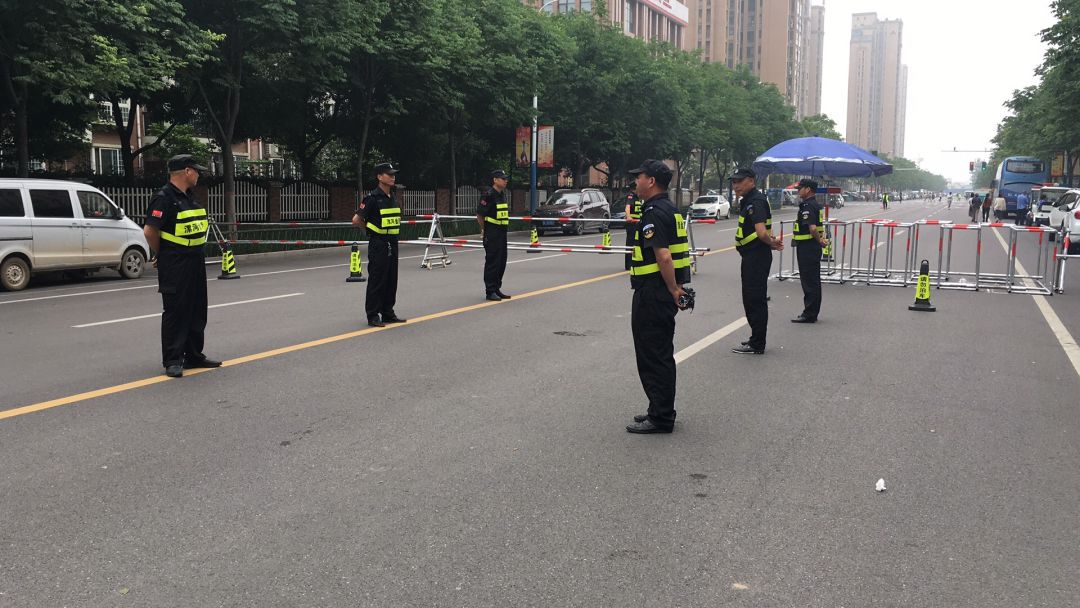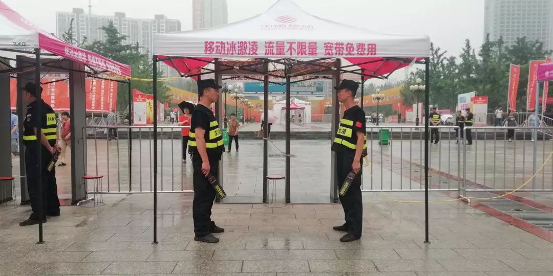 不畏炎熱的金盾保安,排查可疑人員,確保會場井然有序