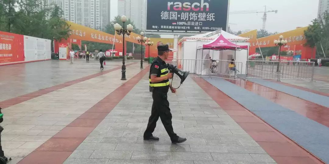 會展中心西口,嗓子喊啞的保安員,依然盡職盡責(zé)