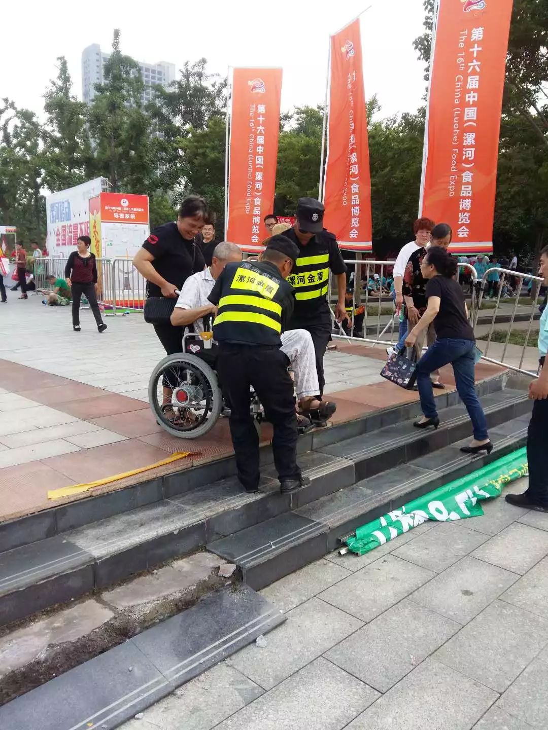 食博會期間,幫助多名行走不便老人上下臺階,多次得到市民的贊賞和肯定