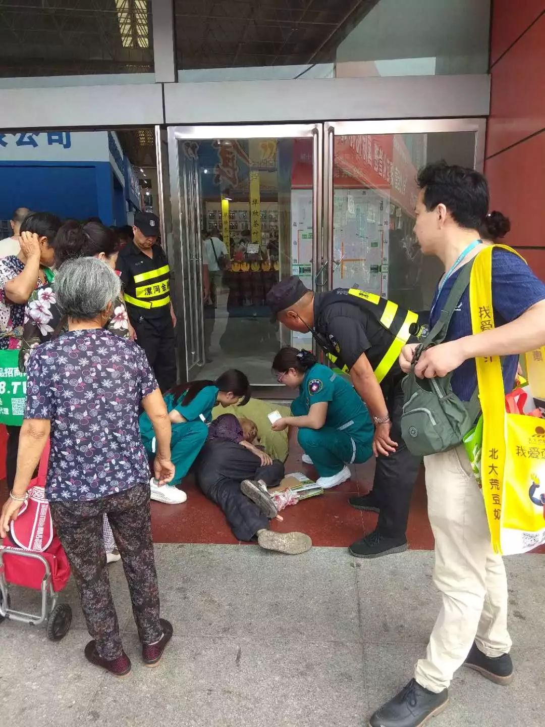 ? ? ? 5月17日上午10:00左右,由于天氣炎熱,一名70歲左右老人暈倒在展館門口,執(zhí)勤保安及時發(fā)現(xiàn)立馬撥打急救電話,并細心找來紙箱子為老人墊在身下,直到急救醫(yī)生將老人拉回醫(yī)院救治,才放心繼續(xù)工作!